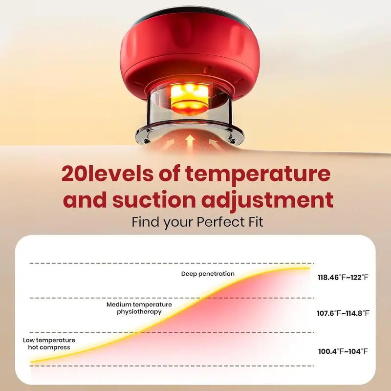 With adjustable suction levels and built-in heat therapy, you can personalize every session to match your comfort and needs — giving you a professional-level treatment anytime, anywhere.
